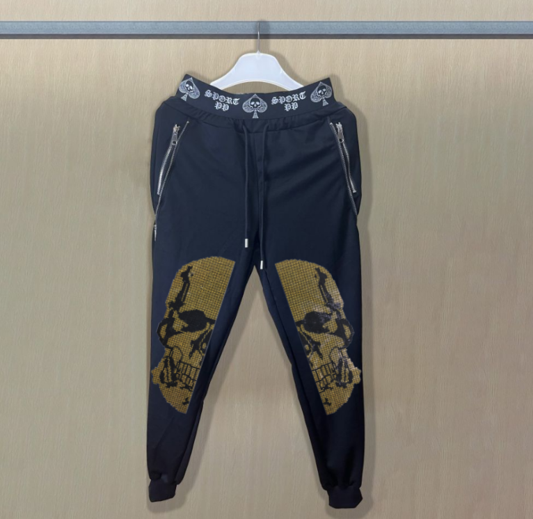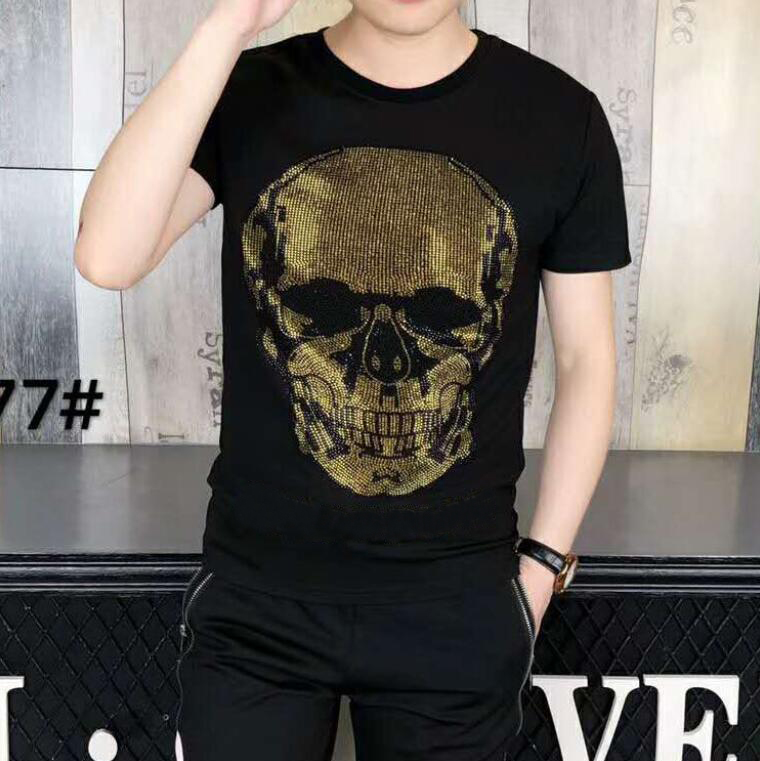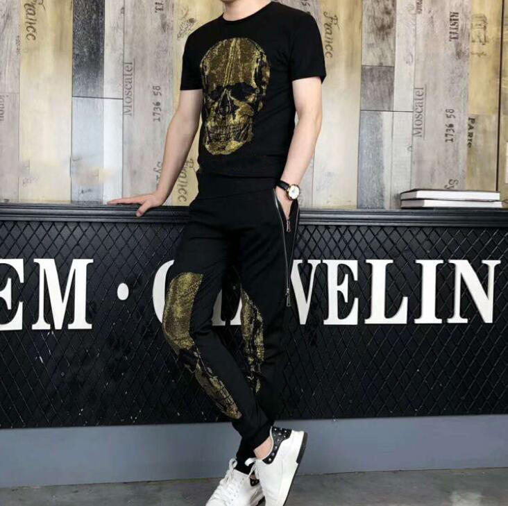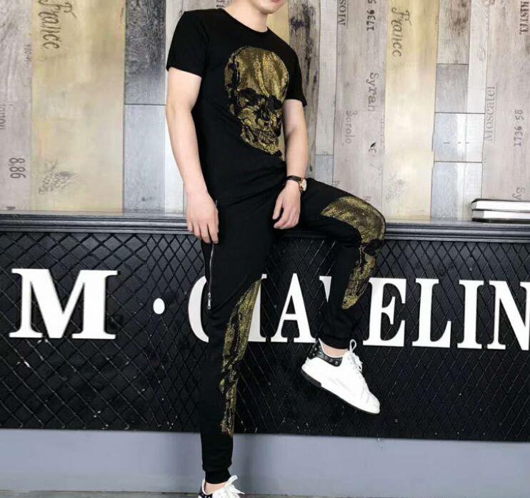 02 New European and American Style Men’s Hot-Fix Rhinestone Skull Summer Set outfits
